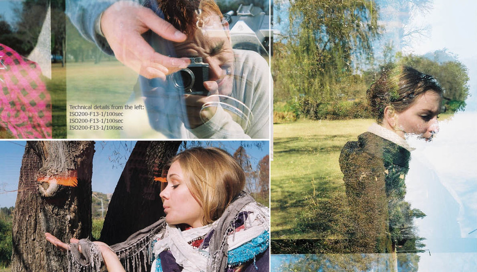 With a picnic, a common interest in nature is shared. The double-exposed scene captured the literal overlapping feeling of an outdoor experience. The effect is created with a vintage Ricoh 35mm SLR Film Camera, by rolling back the film manually.